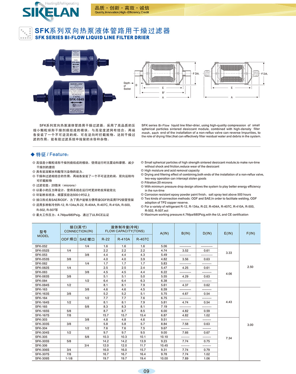 SFK系列雙向熱泵液體管路用干燥過濾器