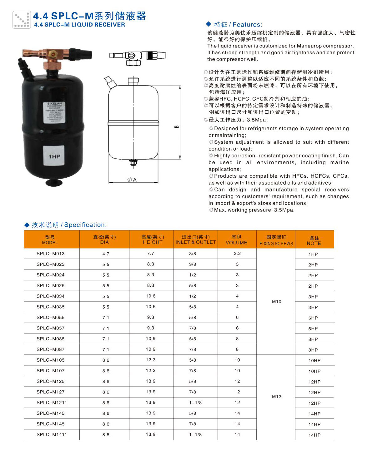 產品簡介:該儲液器為美優樂壓縮機定制的儲液器,具有強度大、氣密性好,能很好的保護壓縮機