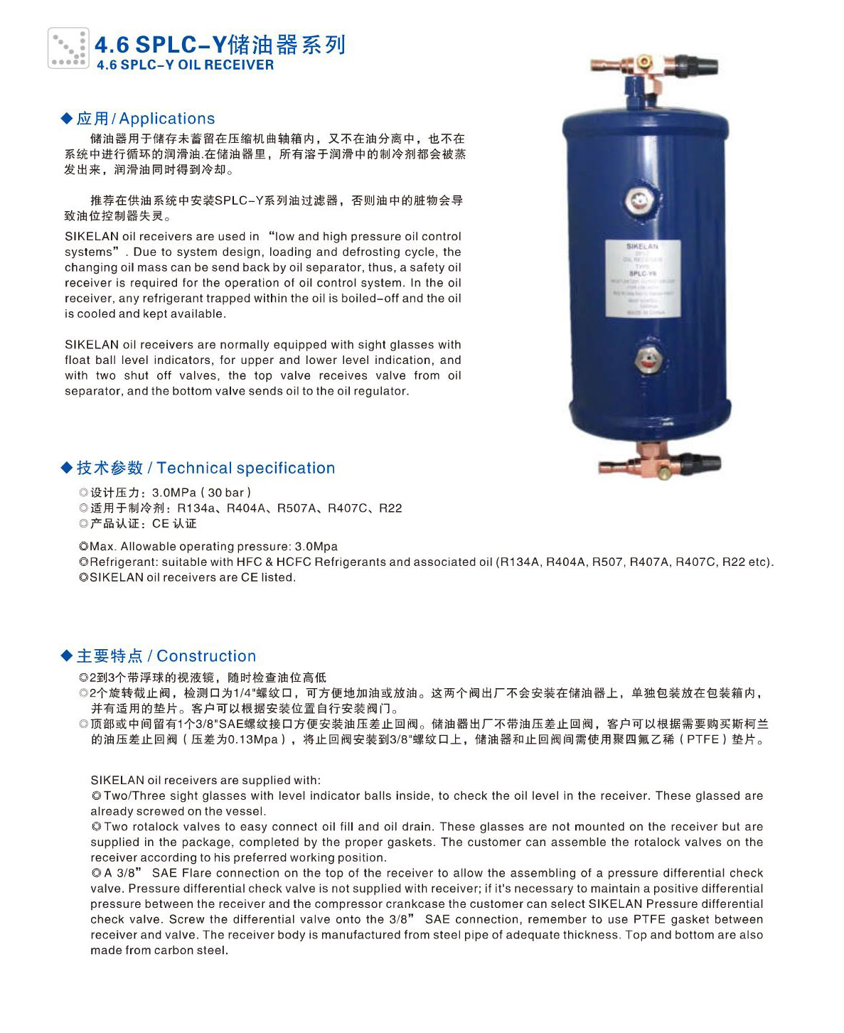 儲油器用于儲存未蓄留在壓縮機曲軸箱內,又不在油分離中,也不在系統中進行循環的潤滑油.在儲油器里,所有溶于潤滑中的制冷劑都會被蒸發出來,潤滑油同時得到冷卻。